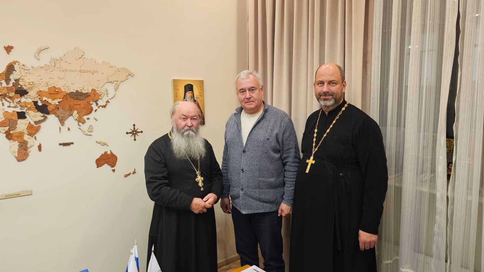 2 декабря 2025 года в офисе Фонда состоялась важная встреча с представителями Белорусской Православной Церкви. Гостями стали священники из прихода Храма Богоявления в Минске — отец Валерий (Трухан) и отец Владимир (Герасименко), а также давний друг Фонда Сергей Одинцов.