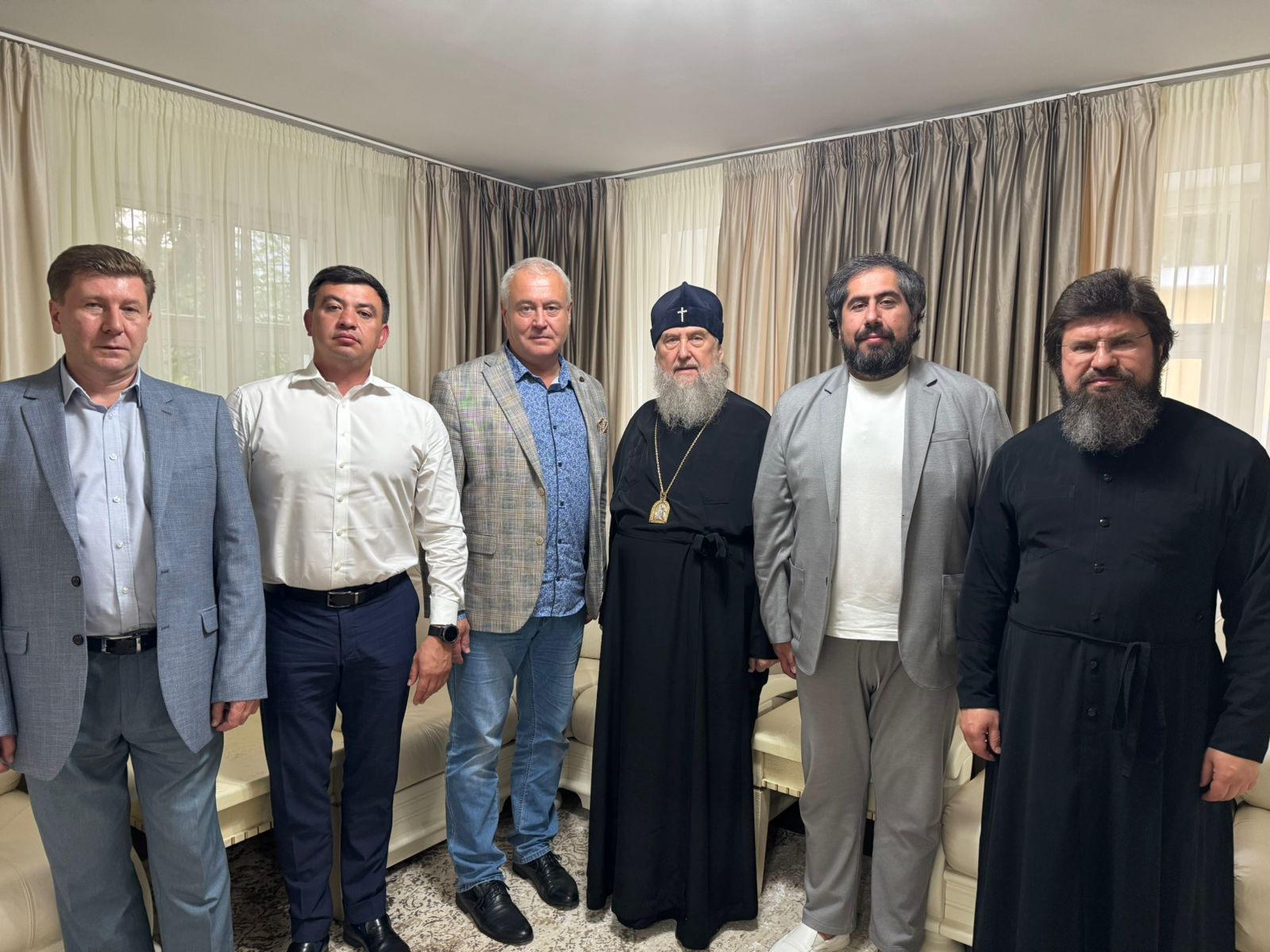 18 июня на Патриаршем подворье при храме святых мучениц Веры, Надежды, Любови и Софии в Представительстве Православной Церкви Казахстана прошла встреча митрополита Астанайского и Казахстанского Александра с архимандритом Сергием, представителями Фонда «Иннотех ХХI» и его партнерами. Присутствовали президент Алексей Агапов, вице-президент Арен Вирабян, представитель Фонда в Казахстане Константин Чи и гендиректор ООО «Вифания» Никита Нужный.
